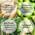 • Ginseng Root Extract stimulates circulation to support healthy hair growth.